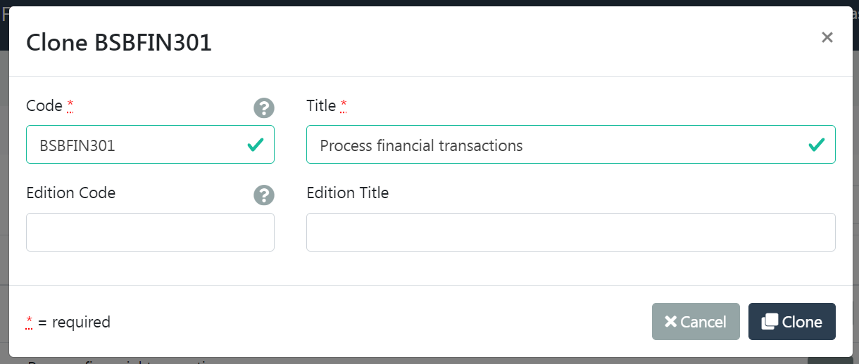 When customising units, it may be necessary to make a copy (clone) of a unit in your organisation for example, to add an edition code.