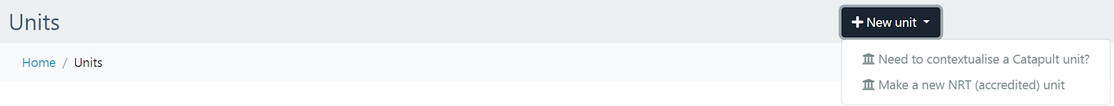 In your unit screen, click the top-right button + New unit to either view instructions to customise a standard Catapult unit or create a blank NRT unit.