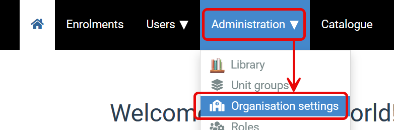 To enable this option, click Administration > Organisation settings on the top menu bar...