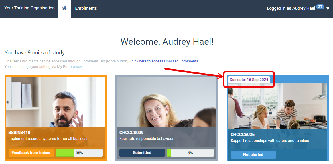 When using Catapult LMS, you can assign Due Dates for individual enrolments. This can be done via the Edit enrolment page, or in bulk during a batch enrolment creation process only. These due dates are visible on any Enrolments page, and also on the Learner Dashboard;